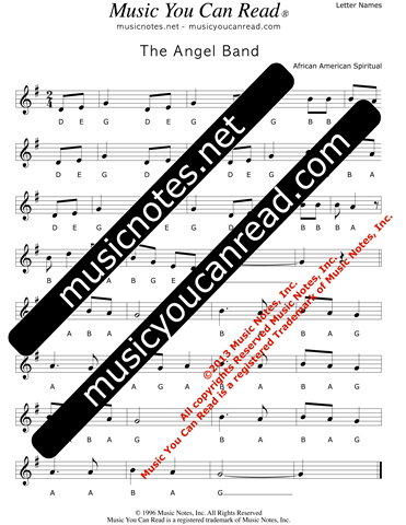 Click to Enlarge: "The Angel Band" Letter Names Format